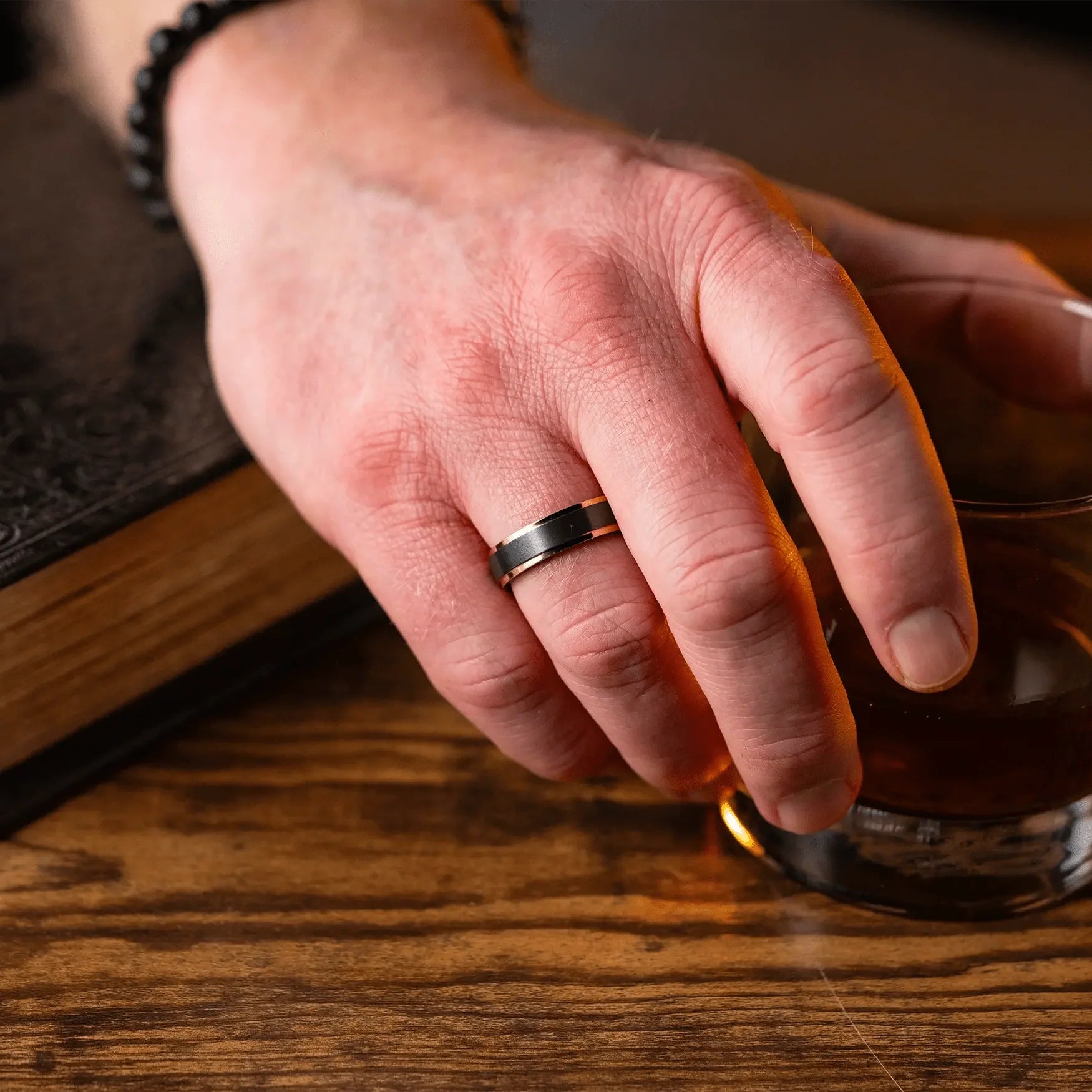 Black Zirconium (charcoal gray color) with 14K Rose Gold Plated Sides
