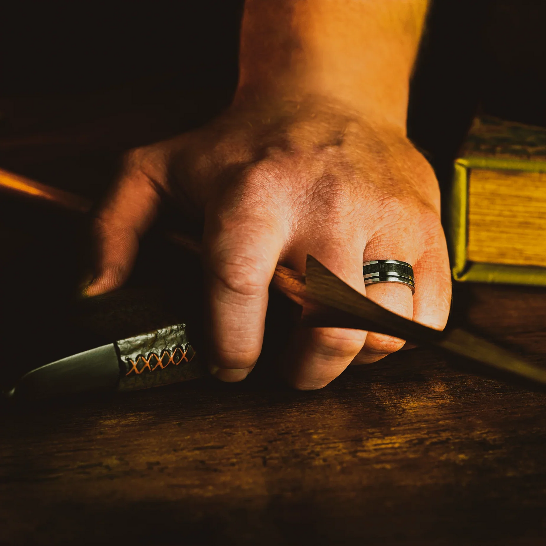 • Cobalt Chrome with Green and Black Bow Thread and Green Ash Wood Inlays and The Lord of the Rings™️ Logo Engraving
