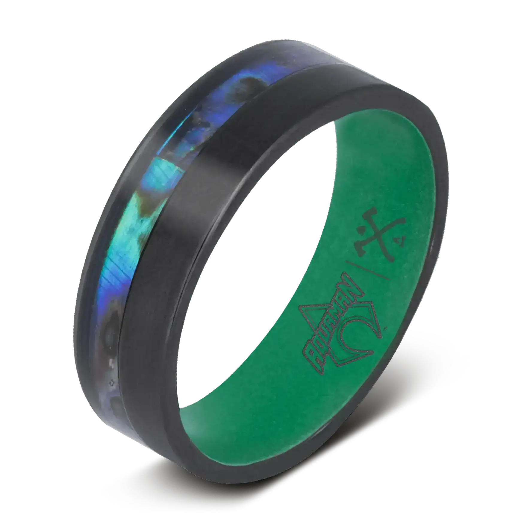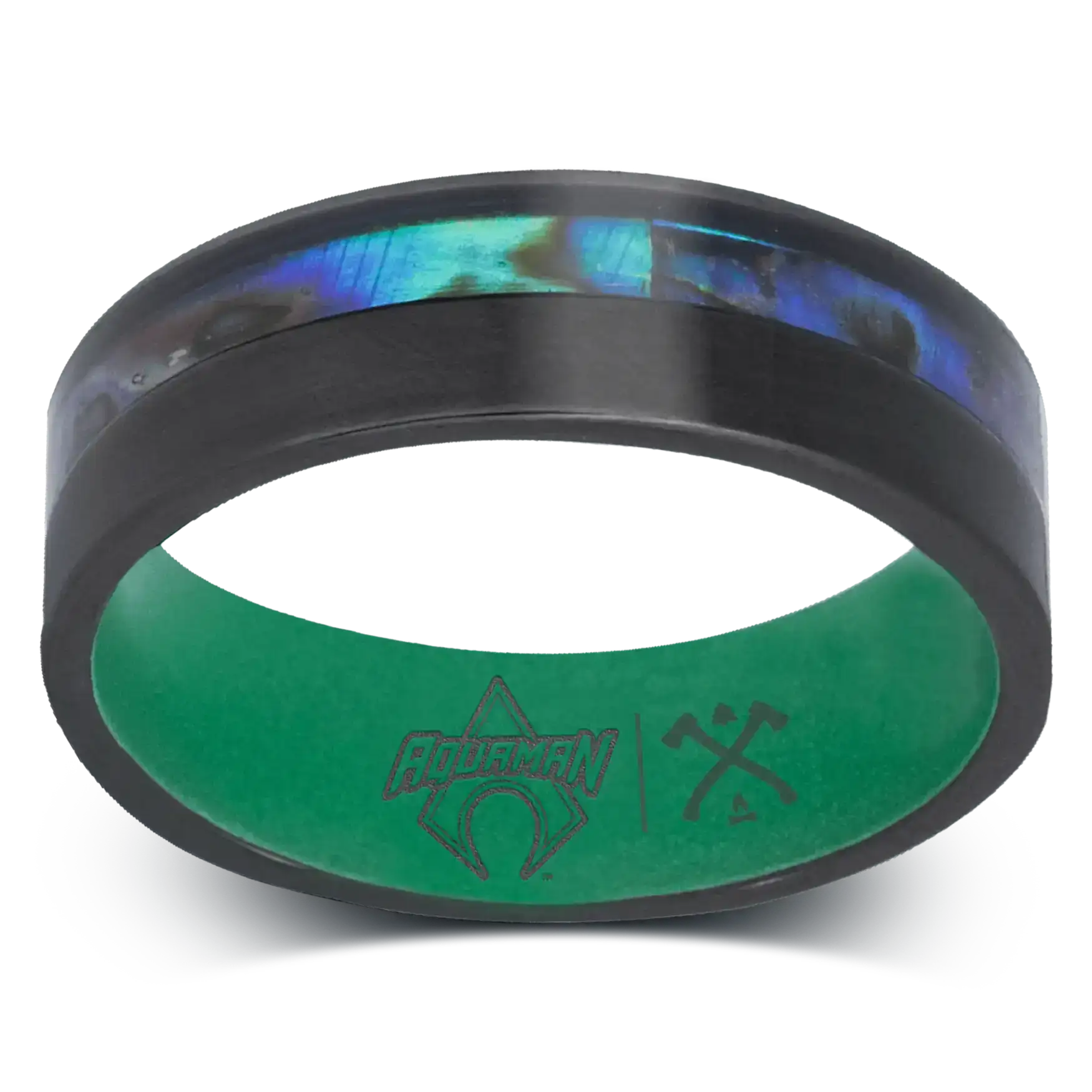 Black Zirconium (charcoal gray color) with 3mm Abalone Shell Inlay, Green Cerakote Sleeve and Aquaman Logo Engraving