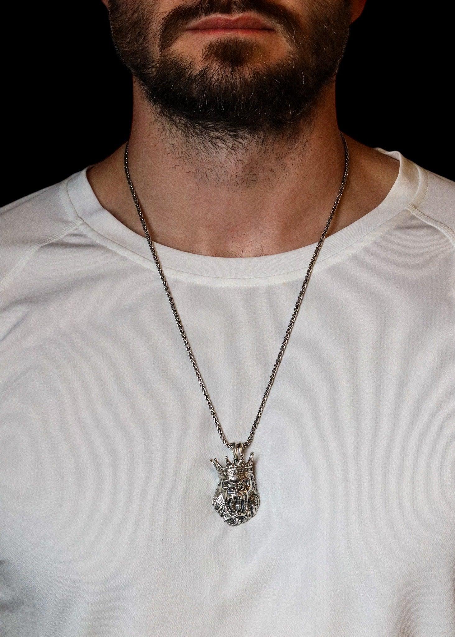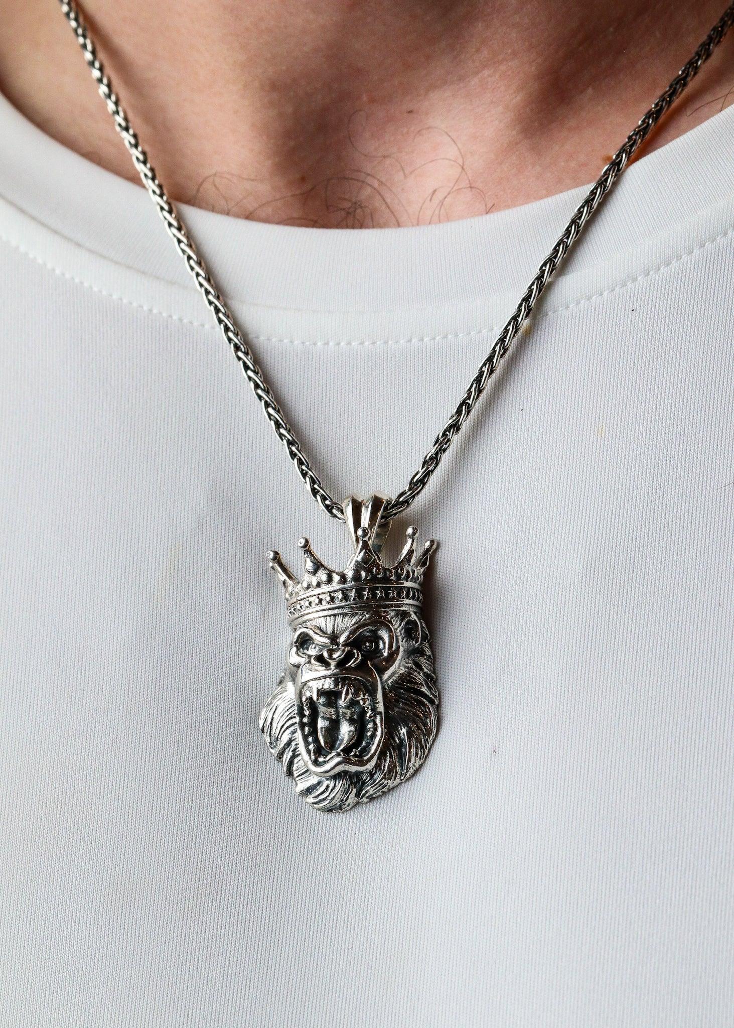 The Silver Kong The King pendant from Dynamis Jewelry is a powerful and stunning tribute to the majestic gorilla. Crafted from sterling silver with exquisite attention to detail, this pendant features a powerful gorilla adorned with a majestic crown, symbolizing strength and royalty. The combination of lifelike craftsmanship and symbolic design makes this pendant a standout piece of wearable art. Whether worn as a statement of admiration for wildlife or as a unique accessory, the Silver Kong The King pendant is sure to captivate with its blend of elegance and wild allure.