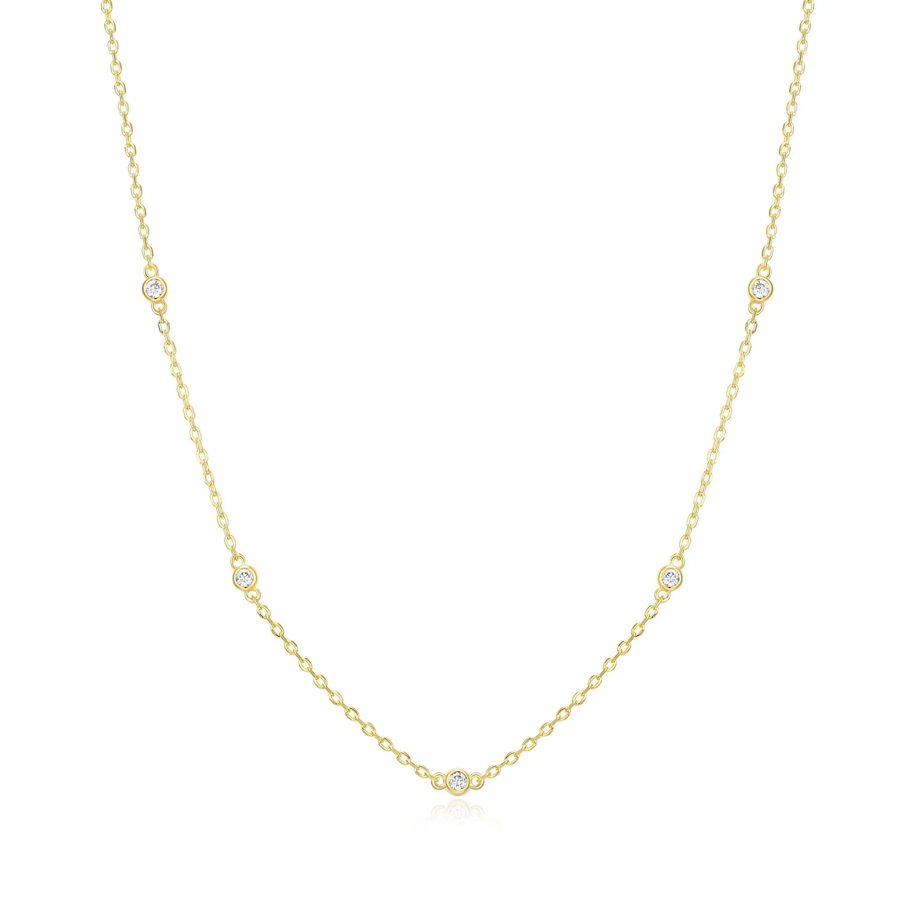 Gold Bezel-Set Lab-Created Diamond Station Necklace