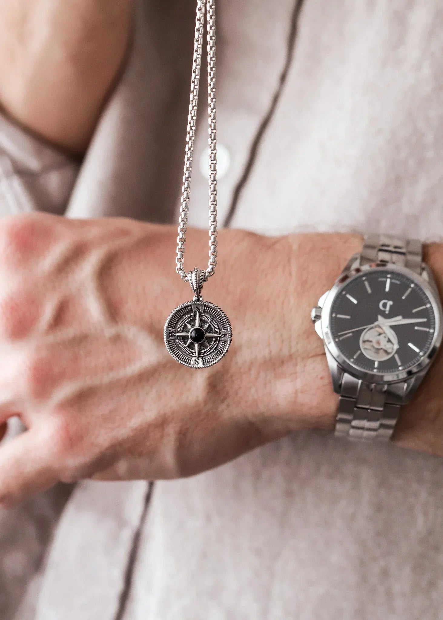 Dare to navigate the unknown with a Silver Compass Pendant! Crafted from solid silver, this stunning pendant guides you to the path of exploration and discovery. Follow your intuition and go forth on your own adventure -- it's where the real magic happens!