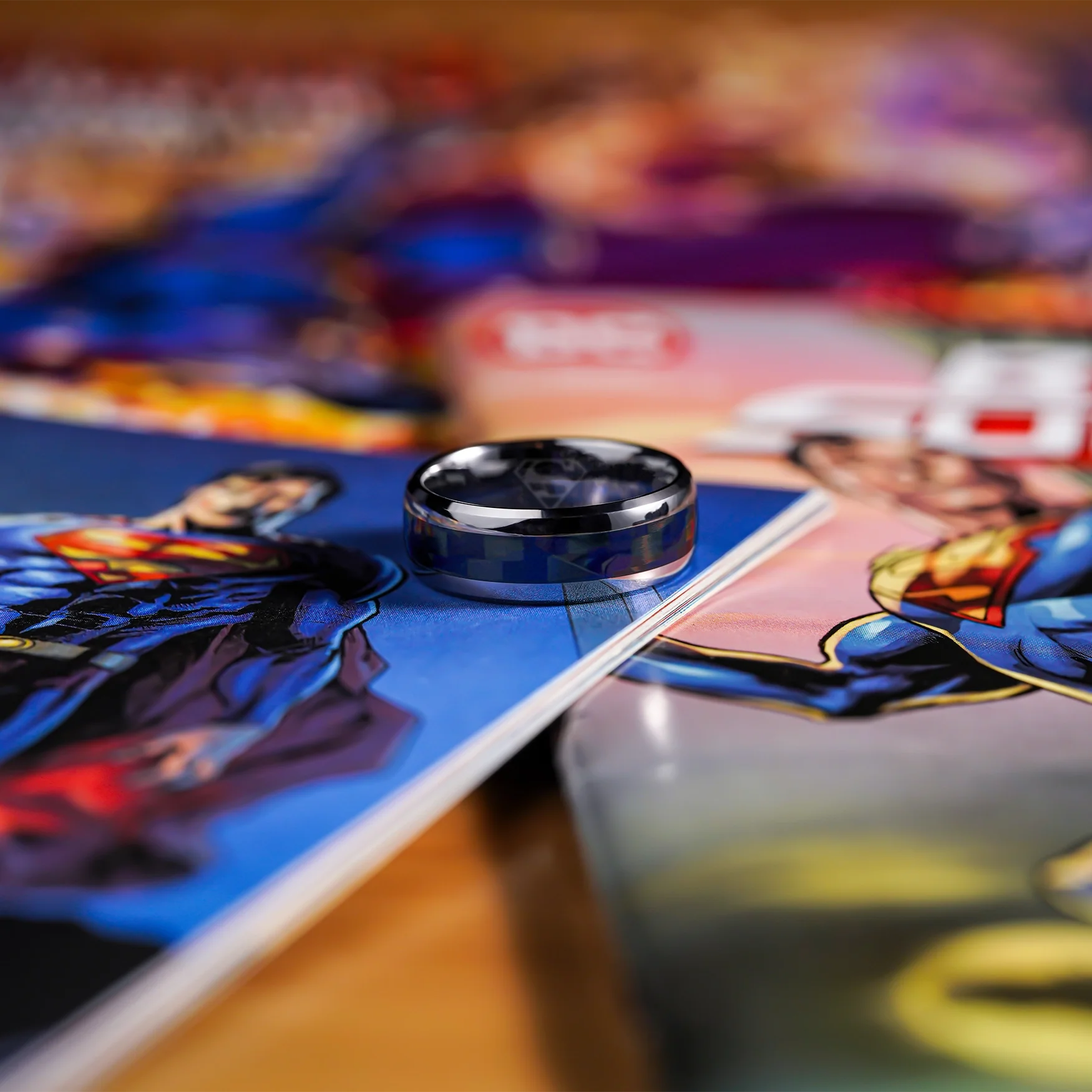 • Tungsten with Blue and Black Carbon Fiber Inlay and Superman Logo Engraving